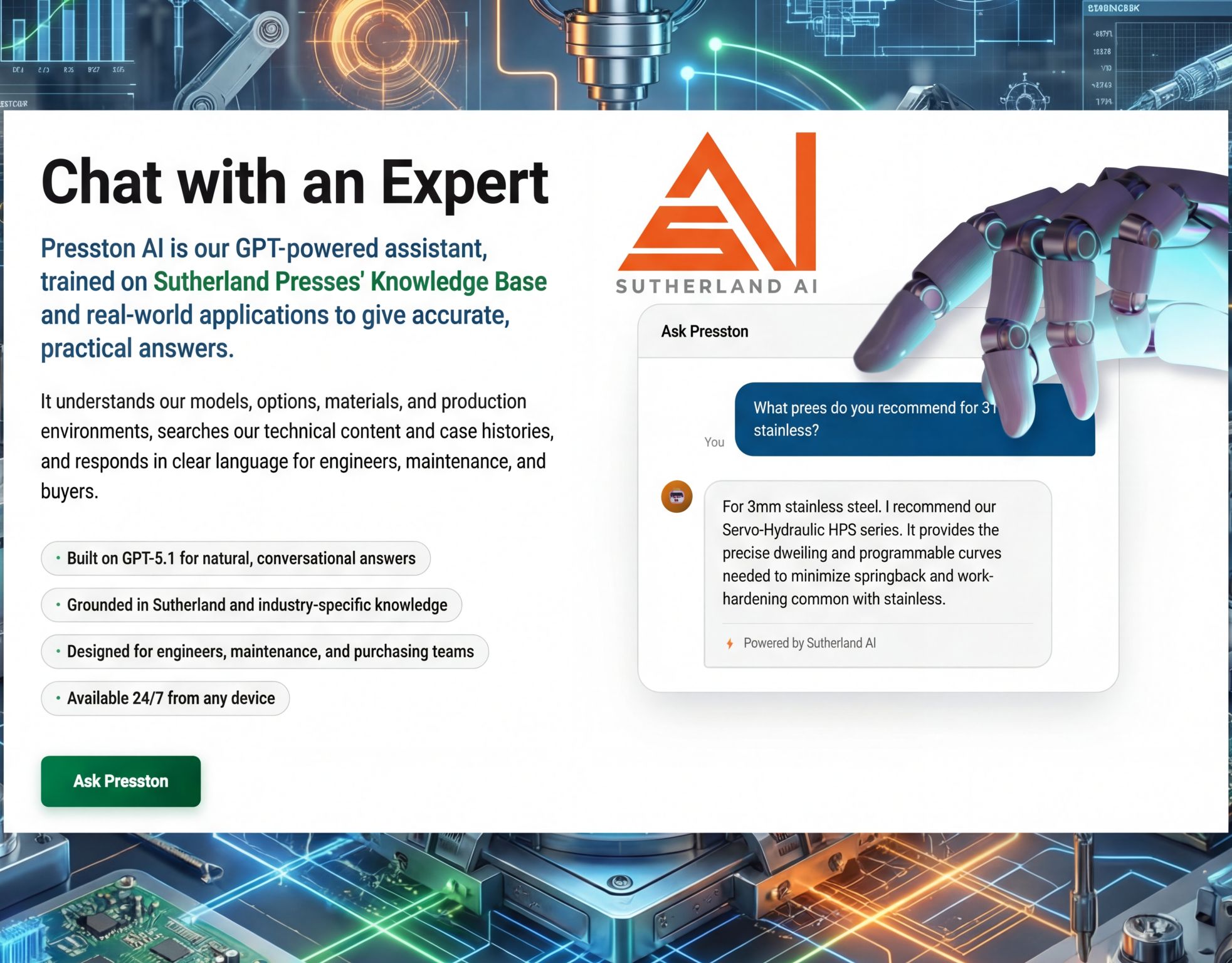 PRESSTON™ is the always-on AI expert for press maintenance, delivering instant, safety-first guidance for mechanical, hydraulic, and servo-hydraulic presses. Reduce downtime, improve reliability, and empower your maintenance team every shift.