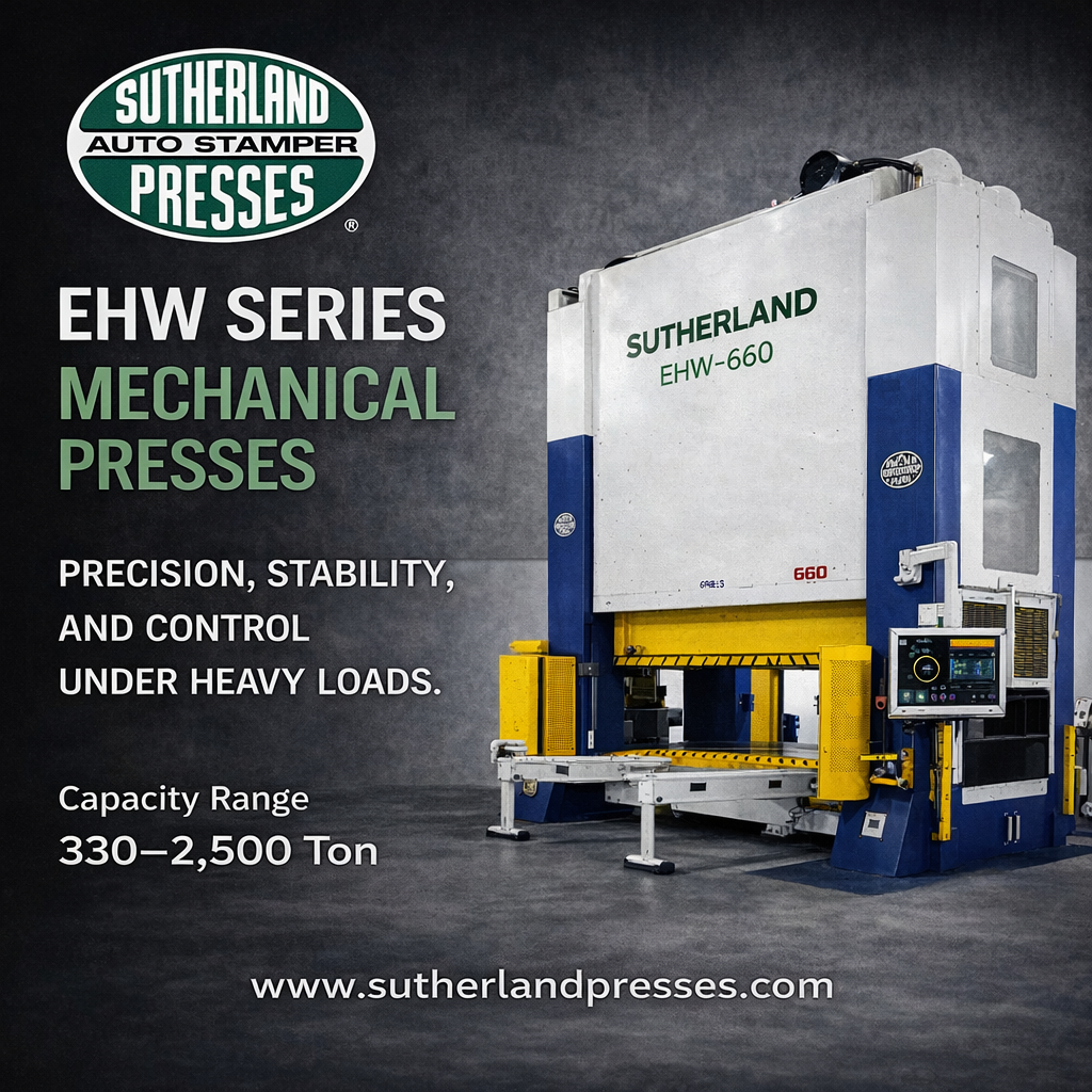 The EHW Series is built for production environments where uptime, precision, and repeatability are non negotiable.This is a four point straight side mechanical press engineered for stability under load and control through every stroke. When tonnage increases, most machines lose consistency. The EHW does not.